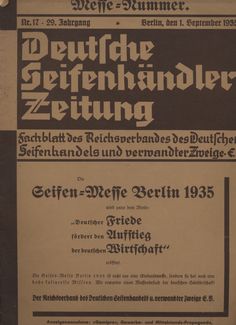 Seifen-Messe Berlin 1935 unter dem Motto Deutscher Friede fördert den Aufstieg der deutschen Wirtschaft Pappeinband, 26 Seiten, gut mit Spuren ca. 29 x 21 cm,