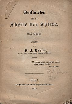 Über die Theile der Thiere. Vier Bücher. Deutsch von Dr. A. Karsch