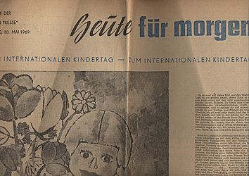 Zeitungen, DDR, Inhalt u.a.: internationaler Kindertag 6 Seiten, zahlreiche schwarzweiße Abbildungen, guter Zustand, gefaltet ca. 50 x 36 cm,