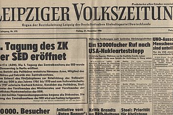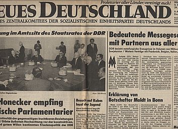 Zeitungen, DDR, Wendezeit Inhalt u.a.: Erich Honecker empfing japanische Parlamentarier, Messegeschäfte, Oskar Lafontain besucht die UdSSR Zeitung, 6 Seiten, gut mit Spuren, gefaltet ca. 50 x 36 cm,