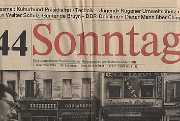 Zeitungen, DDR, Inhalt u.a.: Arbeitsbesuch von Fotografen, Bax Walterb Schulz und Günter de Bruyn 12 Seiten, zahlreiche schwarzweiße Abbildungen, guter Zustand, gefaltet ca. 50 x 36 cm,