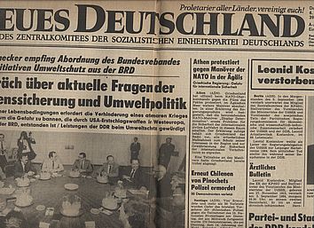 Zeitungen, DDR, Wendezeit Inhalt u.a.: Erich Honecker empfing japanische Parlamentarier, Messegeschäfte, Oskar Lafontain besucht die UdSSR Zeitung, 6 Seiten, gut mit Spuren, gefaltet ca. 50 x 36 cm,
