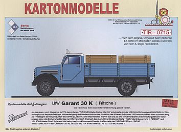 19754: Kartonmodelle LKW Garant 30K Pritsche