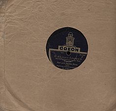 August Batzem Köln mit Orchesterbegleitung, Schellackplatte mit Hülle, auf der Hülle Postedikett mit Stempel vom 14.07.1931 gut mit Spuren, Hülle beschädigt ca. 25 x 25 cm,
